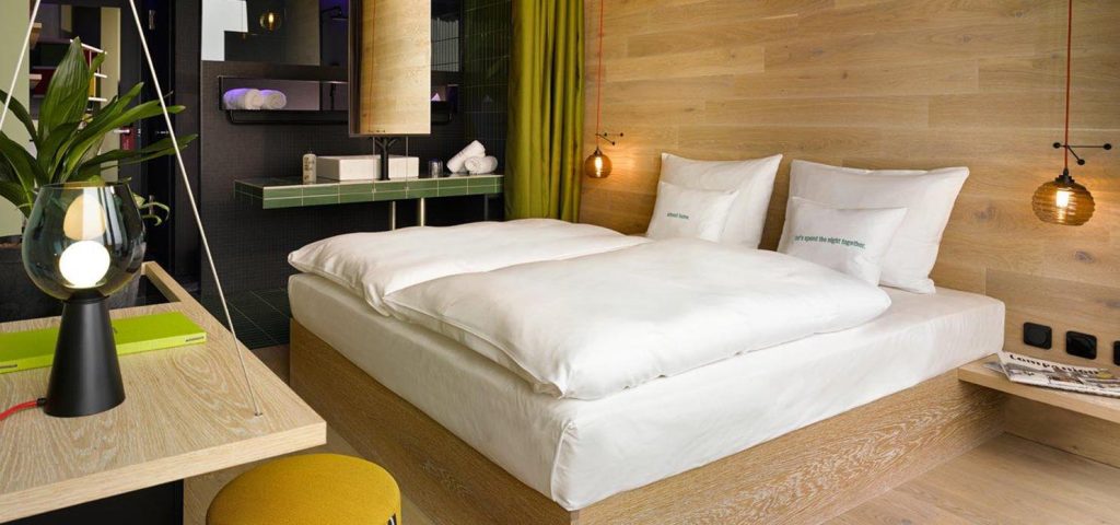 This design hotel follows an “urban jungle” theme, boldly innovative and full of creativity and humor. The public areas use abundant greenery and natural materials, while the guest rooms blend vintage and modern styles. Graffiti art and handmade furniture coexist, expressing a strong personality.